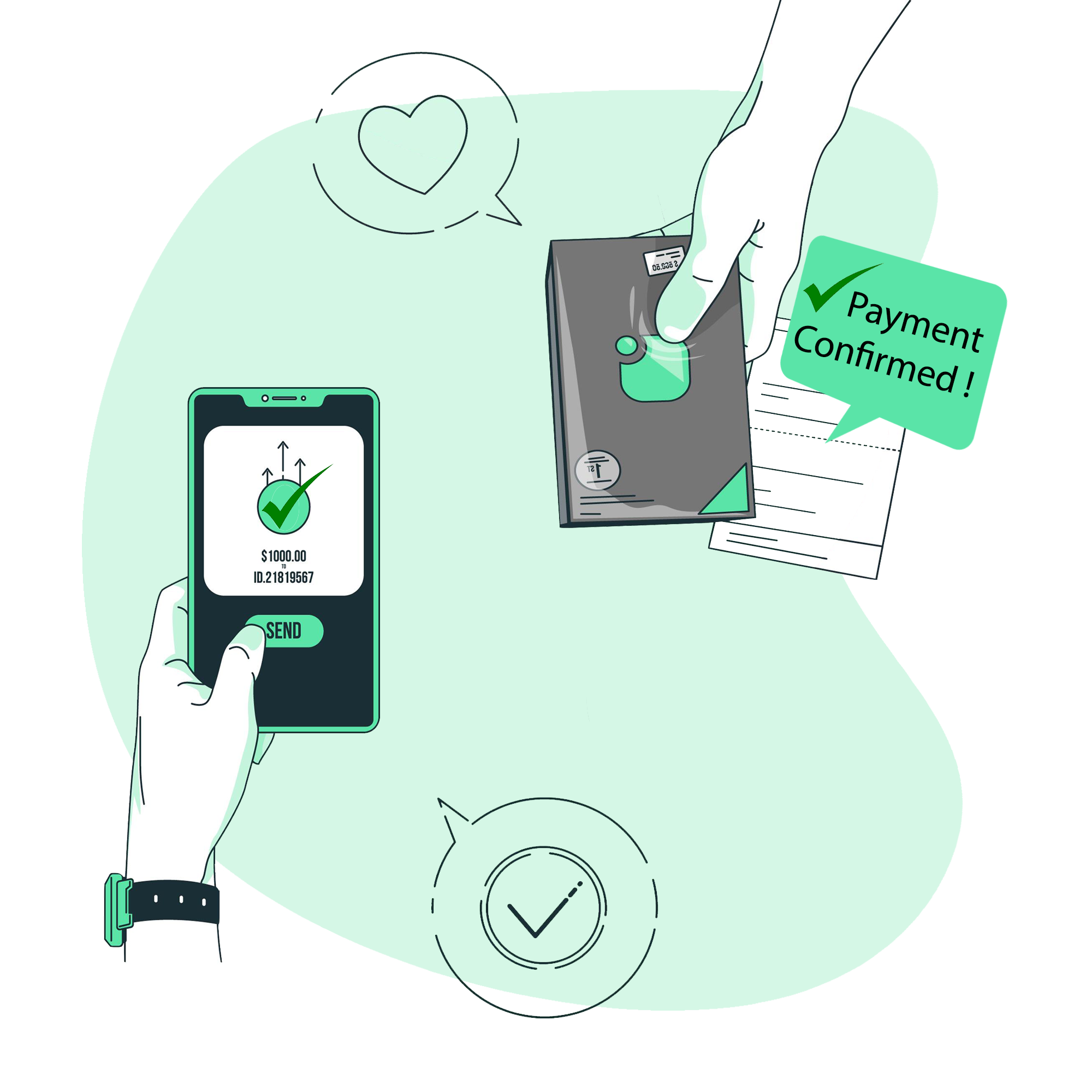 Receive instant confirmation of the transaction once your customers or clients can pay for your products and services